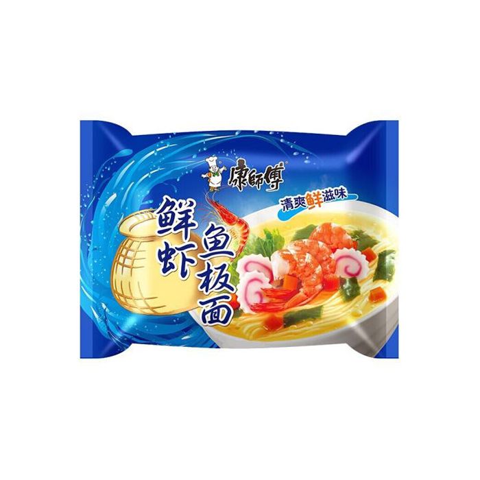 búzaliszt, pálmaolaj, keményítő, só, búzaglutén, szójafehérje, szezámmag, cukor, szójabab, élesztőkivonat, fűszerek, aromák, garnélarák kivonat, sűrítőanyagok: E466, E415, E425, E1420, E401, E1413, emelőszer.